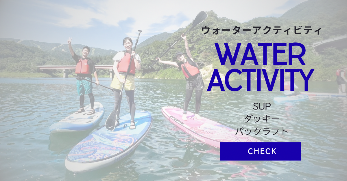 | 傷害保険加入先 | あいおいニッセイ同和損保 ・死亡・後遺障害 3300千円 ・入院保険金日額 3000円 ・通院保険金日額 1000円 ※1名あたり ※ウォーターアクティビティのみ対象 |